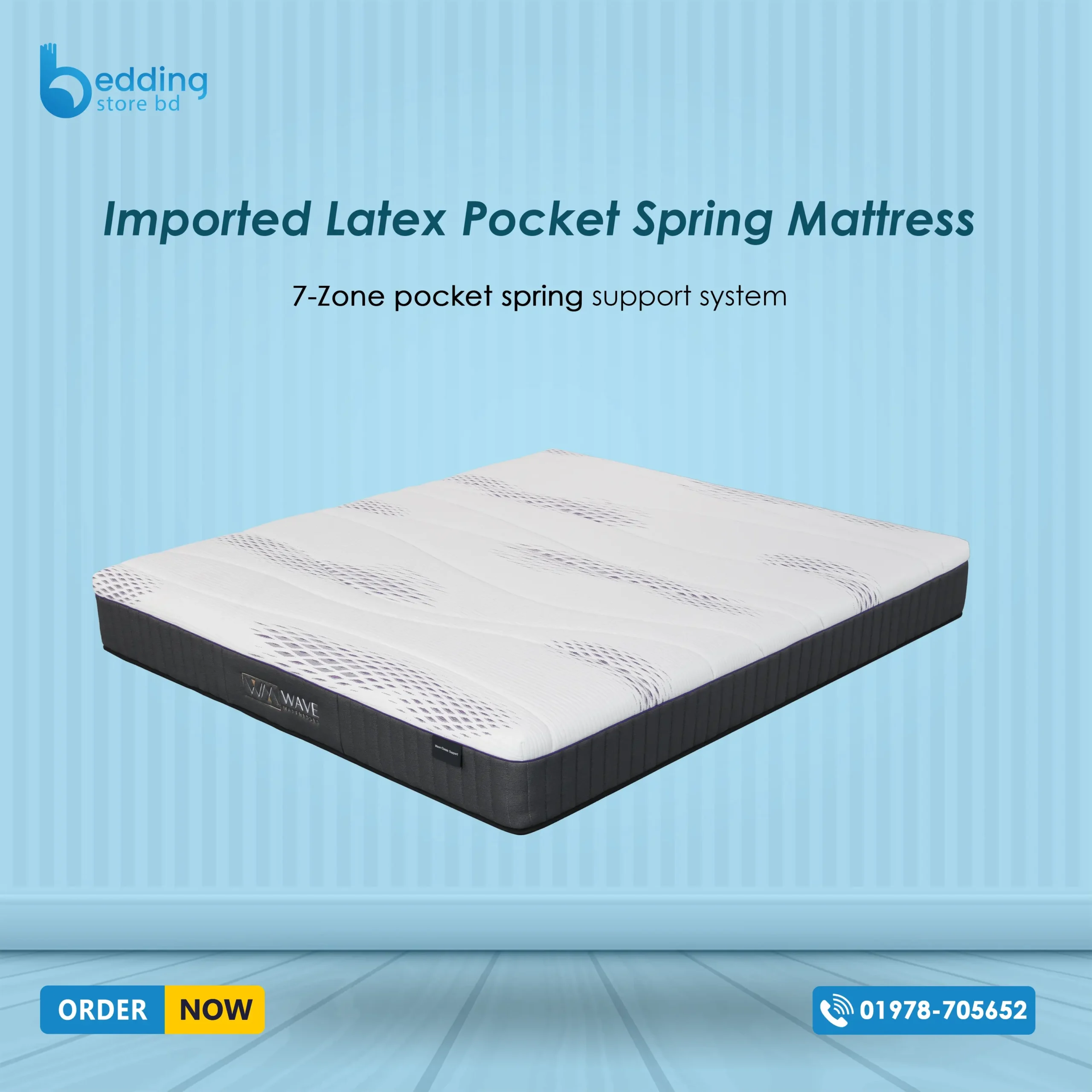 Elevate your sleep to luxury levels with the Latex Pocket Spring Imported Mattress Best 1 from Bedding Store BD – a premium imported mattress combining breathable latex foam and advanced pocket spring technology. Featuring the innovative Wave Classic Support system with 7-zone supporting technology, it delivers targeted body support, maintaining perfect spine alignment even for side sleepers. The ventilated latex layer adapts to your shape, releasing pressure on joints while promoting exceptional airflow to regulate body temperature all night.