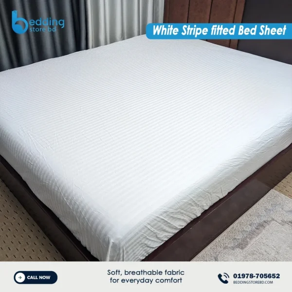 Premium White Stripe Fitted Sheet – High-Quality Elastic Fit | Bedding Store BD
